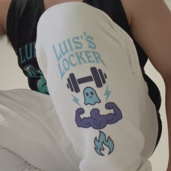 Freeze the flex. Haunt the game. The Ghost Flex Fleece Joggers bring ghost-mode energy with icy blue Luis’s Locker branding and a bold ghostly lifter graphic. These white fleece joggers are built for post-lift chills, gym grinds, or off-day drip. Soft, warm, and charged with spirit energy.